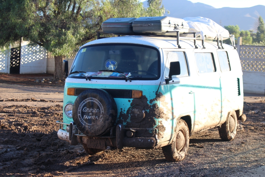 No sé cómo y ya entrada la noche doblamos en una calle de tierra y barreando un vez más llegamos a un portón. Aleluya. Catire y Cala con las piernas llenas de lodo porque pensaron la puerta era otra tocaron el timbre. Las monjas no podían creer que habíamos podido llegar. Parece que nos habían mandado un mail para que desistiéramos de esa parada, mensaje que nunca recibimos. Ellas estuvieron a punto de ser evacuadas pero el caudal de agua que pasaba por la avenida era tan fuerte que tuvieron que volver. Enseguida nos dieron la llave de la casa de huéspedes que tenía electricidad pero sin agua y nos dieron la noticia: la ruta para Antofagasta estaba cortada. Ya veríamos al día siguiente.