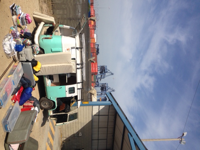 El sábado temprano Catire partió para tapiar la kombi. En el sistema “ro ro” de embarque (el más barato) los autos van sin container. Un operario los sube y baja del barco. Para evitar que algo desaparezca se recomienda aislar la cabina del conductor. En una maderera, colocaron un plancha de madera.