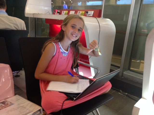 En Bogotá tuvimos que esperar hasta las 10 de la noche nuestro vuelo. Tuvimos la suerte de sentarnos al lado de un matrimonio de Medellín, el inglés, ella colombiana ambos periodistas con una hija de 9 que enseguida se puso a jugar con los chicos. Lo pasaron bomba haciendo origami, jugando a las payanas, a la escondida y mancha. Ni se enteraron. Cala en plena época de exámenes avanzó con varios. Yo de gran conversación con Ana Cristina. Ojalá nos volvamos a encontrar, nos quedaron muchos temas pendientes.