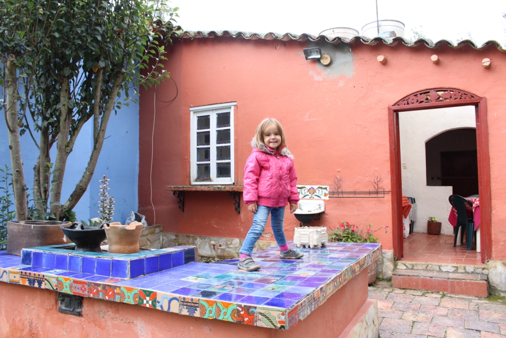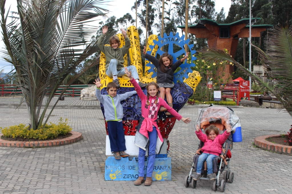 Bogotá nos recibió bien fresca. Los colombianos dividen el país en zonas de tierra caliente y otras de tierra fría. Las estaciones no existen. En todo caso son épocas de lluvias que se alternan con otras más secas, aunque parece que el fenómeno del niño estaba trastocando un poco todo. Llegamos de noche pero bastante bien gracias a las explicaciones de Manu y las indicaciones de varios que nos fueron guiando por el camino.  Como bienvenida nos esperaba un buen ajiaco bogotano, una sopa de pollo con varios tipos de papas, crema y alcaparras. Los Perrota-Mazzinni están hace casi dos años en esta ciudad. Tres varones para alegría de Dimas, pizarrones de papel en las paredes, atrapasueños de lana…una casa creativa y alegre. No nos conocíamos personalmente pero de charla en charla nos fuimos amigos con ganas de volvernos a encontrar. Visitamos con regio picnic el Jardín Botánico con jardines  de rosas, olor a magnolia, bosques tropicales, palmeras altísimas, lagos y puentes. Descubrimos la monumental Catedral de la Sal en Zipaquirá, una iglesia y un vía crucis esculpido a 200 mt bajo tierra dentro de una inmensa mina de sal.