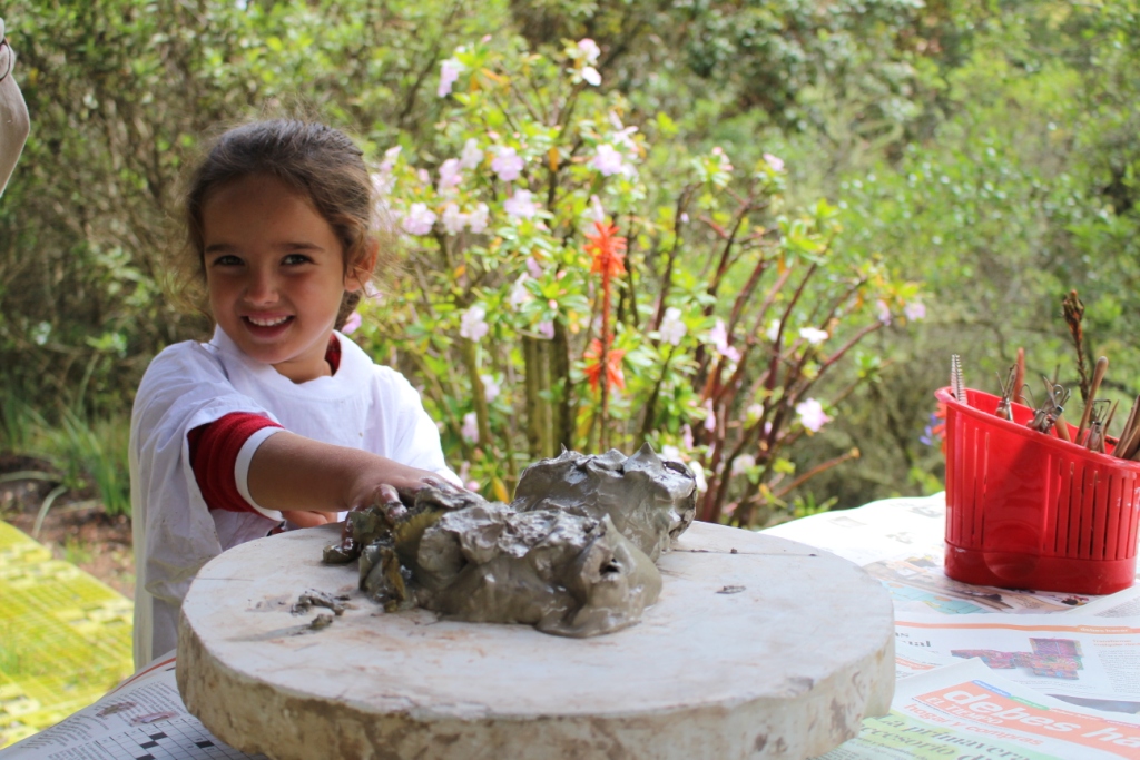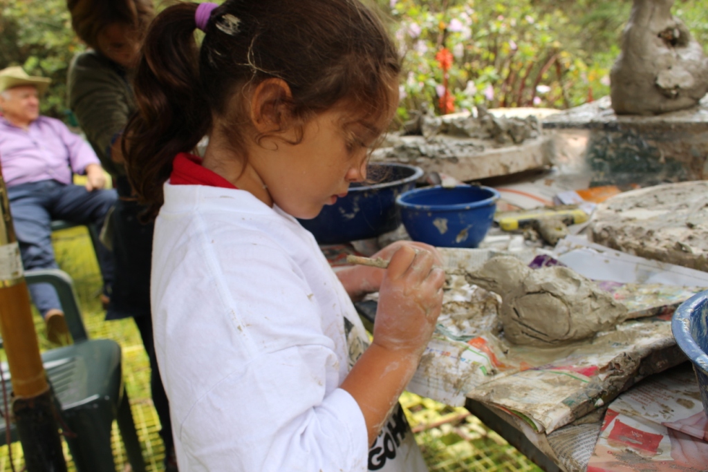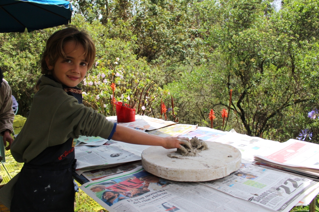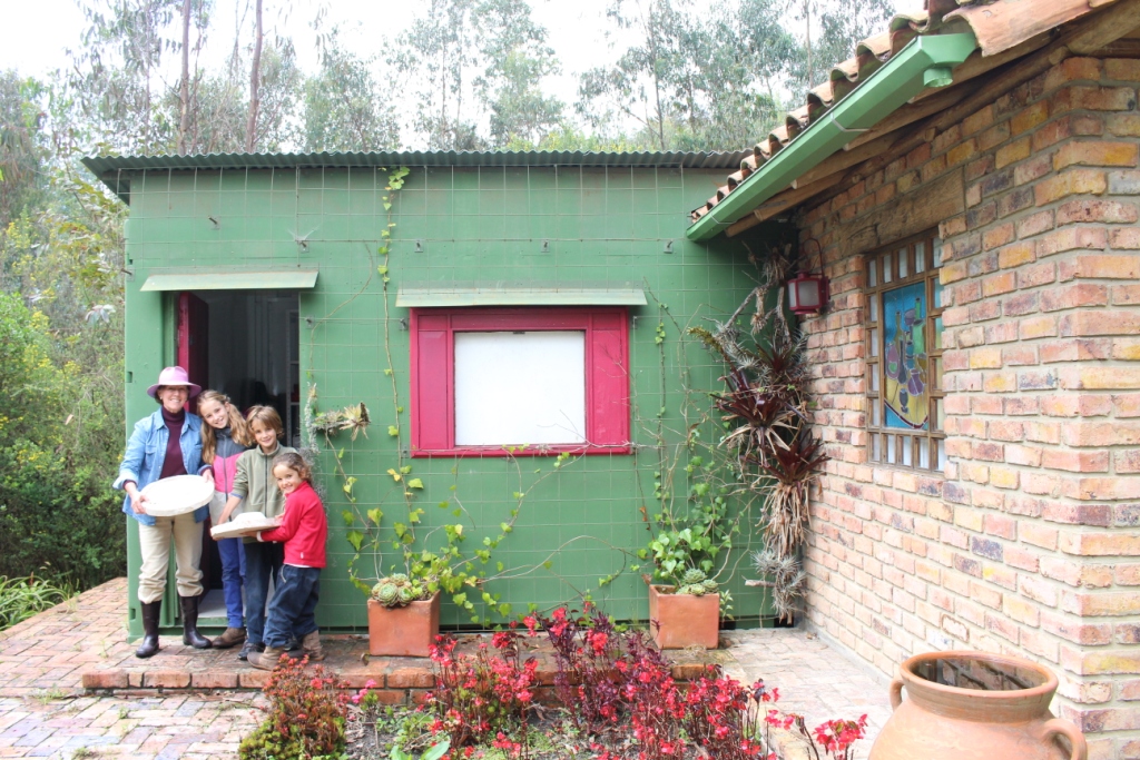 El viernes temprano nos pasó a buscar Carlos Mazabel, padre de Silvia quien desde Vancouver nos iba abriendo puertas en su tierra natal. Carlos y Claudia, nos invitaron a pasar el fin de semana en su finca “El Salitre”. Fueron tres días mágicos. Enseguida congeniamos, los chicos los adoptaron y ellos a nosotros, parecía que nos conociésemos de toda la vida. La finca de colores, con puertas de madera, un jardín con conejos, árboles, pájaros, burro, huerta y mucha gracia en cada rincón. Se notaba cuánto había de ellos en los detalles. Visitamos un bosque joven, regalo de la familia y los amigos para los 70 de Carlos. Un regalo que les pega a la perfección. Son amantes de la naturaleza, ecológicos en serio y de alma. Pasamos una mañana en el taller de cerámica de Claudia. Rodeado de verde bien tupido y exuberante, Claudia armó un refugio-taller tan original como todo lo que crea. Los cuatro chicos, incluida Carmin, hicieron sus esculturas de arcilla bajo la cariñosa mirada de Claudia. Almorzamos delicias, conocimos el jugo de curuba, espectacular con leche y azúcar morena en el borde de las copas. Visitamos un garzario al borde de una laguna y pudimos ser espectadores de la vuelta a casa de cientos de garzas blancas. Y como broche de oro, hubo cabalgata por los caminos de tierra que cruzan ríos y suben sierras. Ya estábamos extrañando el olor a campo así que nos vino bien está dosis especial de familia y vida de campo colombiana.
