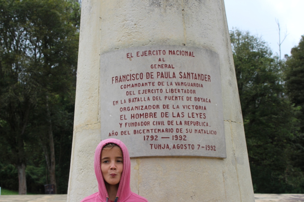 El domingo salimos temprano hacia Villa de Leyva. Los Mazabel se sumaron al programa con nosotros. Un lujo de acompañantes. Pasamos por el minúsculo pero grandioso puente de Boyacá, escenario de la batalla final entre criollos y españoles. El lugar está coronado por una gran estatua de Bolivar, otra de Santander, próceres de la independencia y un árbol de caucho de 231 años.