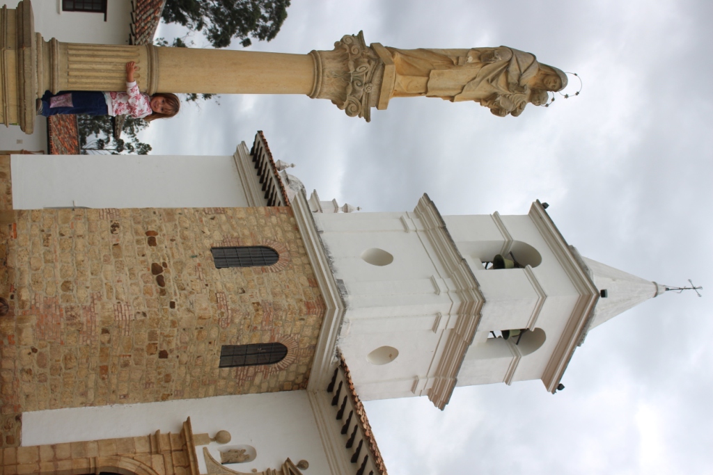 Llegamos a unas cabañas en las afueras de Villa de Leyva. Nosotros pensábamos acampar pero resultó que la cabaña que habían reservado los Mazabel era grande y espaciosa y nos invitaron a dormir dentro. Placer. El lugar tenía mucha gracia. Más árido que la zona de Bogotá pero con Santa Ritas de colores, palmeras y las montañas de fondo. Dejamos las cosas y partimos hacia el pueblo, uno de los más lindos de Colombia. Calles empedradas, una enorme plaza de armas, casas bajas blancas con balcones de madera verde. Almorzamos en un patio con fuente y recorrimos el lugar. Conocimos al gran héroe colombiano, Antonio Ricaurte que nació en esta ciudad. Un especie de Cabral que se inmoló prendiendo fuego un polvorín para impedir que las tropas realistas tomen el lugar. Con este acto salvó a Bolivar y a la independencia. El himno colombiano le dedica unas estrofas: Ricaurte en San Mateo en átomos volando deber antes que vida con llamas escribió.