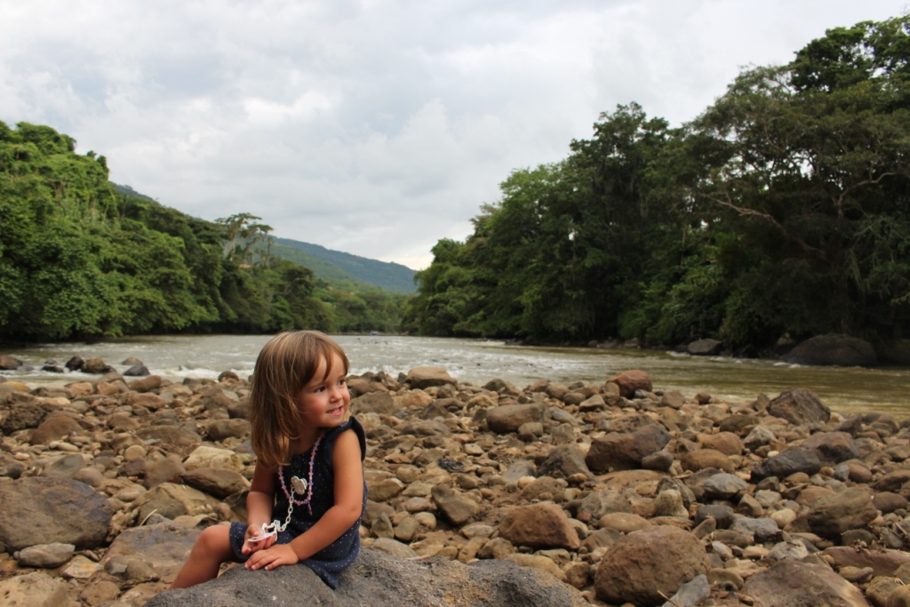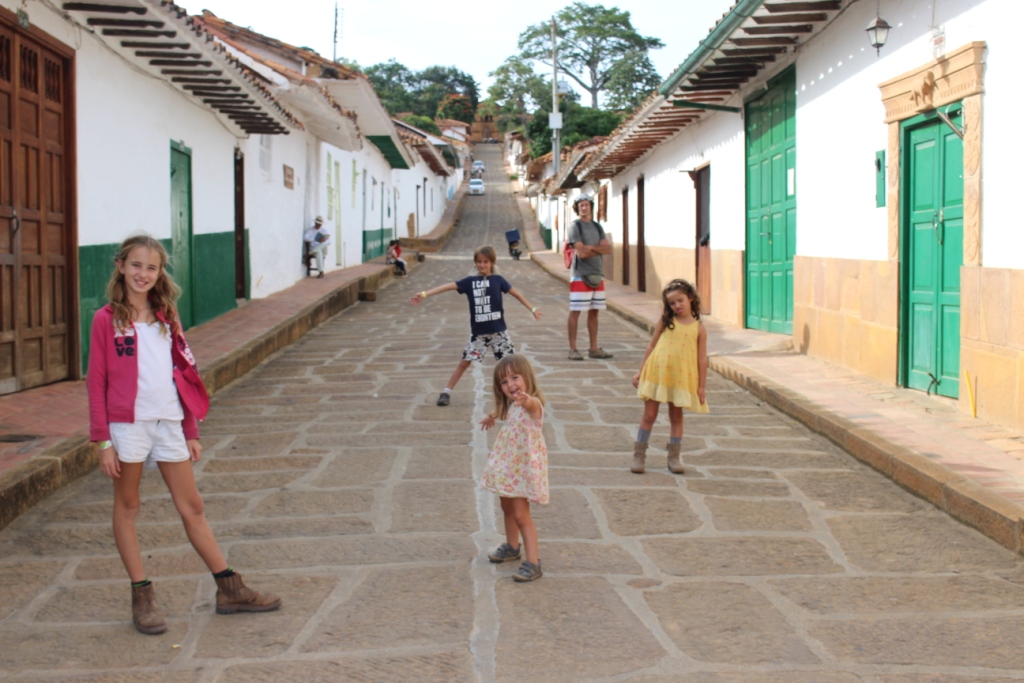 A la mañana siguiente nos despedimos de los Mazabel con sentidos abrazos y seguimos ruta hacia San Gil ya en camino hacia Cartagena. Otra vez subiendo y bajando. Pasamos el espectacular cañón del Chicamocha y  llegamos después del mediodía a San Gil, centro de todo tipo de actividades de aventura. Nos quedamos en el hostal de Gloria que muy generosa nos hospedó los días que estuvimos. Visitamos el húmedo Parque el Gallineral formado en una isla sobre el río Fonce con enormes árboles barbudos. Entré con los chicos mientras Catire mateaba en la kombi. A la salida estaba rodeado de gran charla con un grupo que venía de  Bucaramanga todos muy entusiasmados con nuestro periplo. Sacamos fotos y cuando estábamos saliendo, William el conductor del grupo muy conmovido con nuestro viaje se acerca toca la ventana y nos da el rosario que tenía colgado en el cuello. Muy emocionante la escena. El rosario de William ya es parte de Francisca.