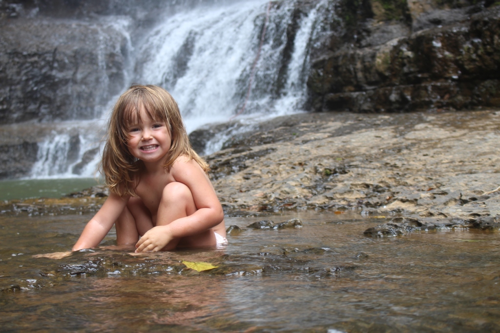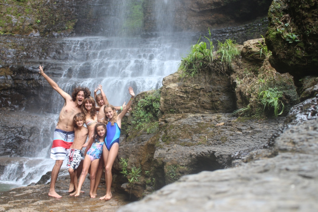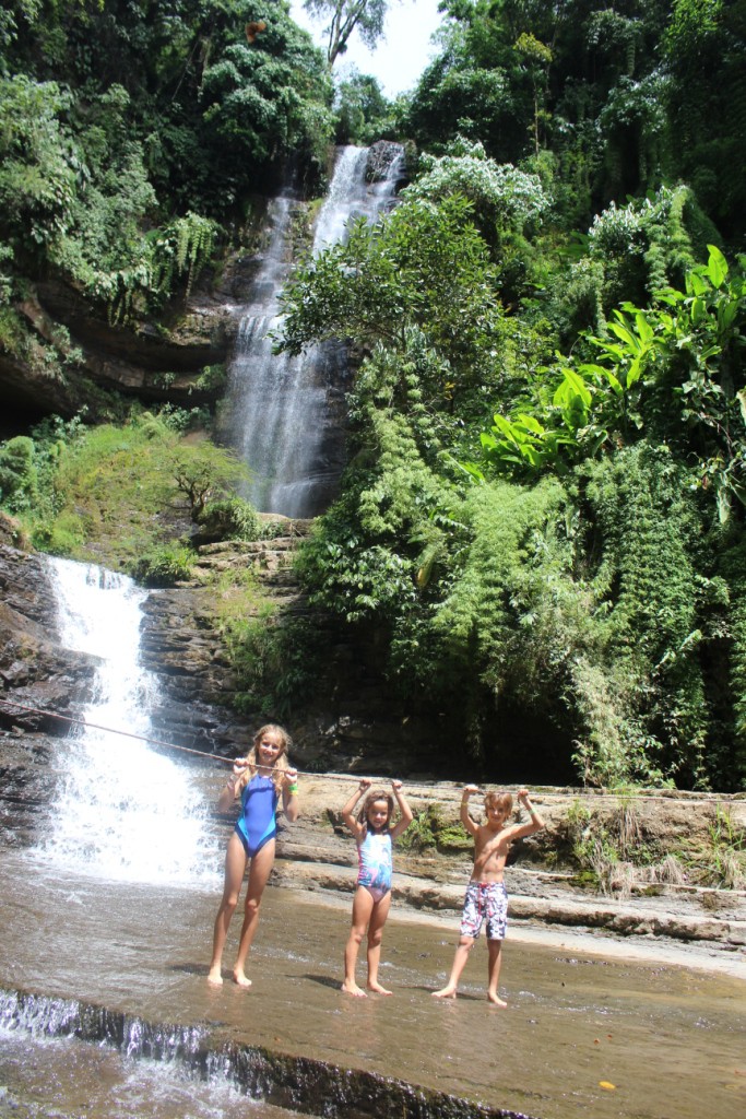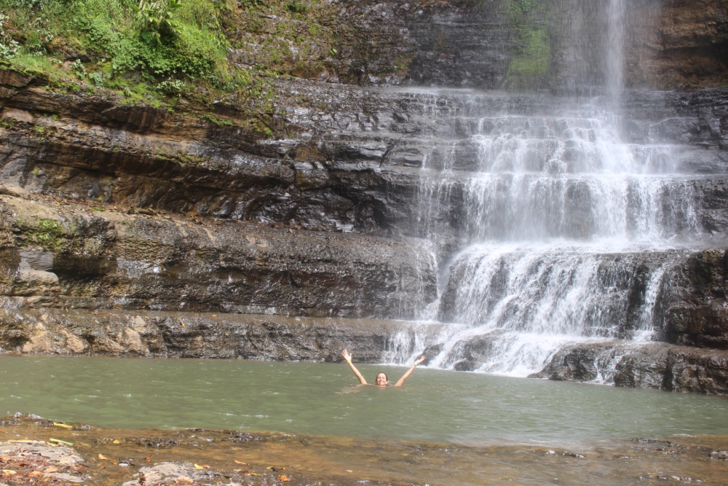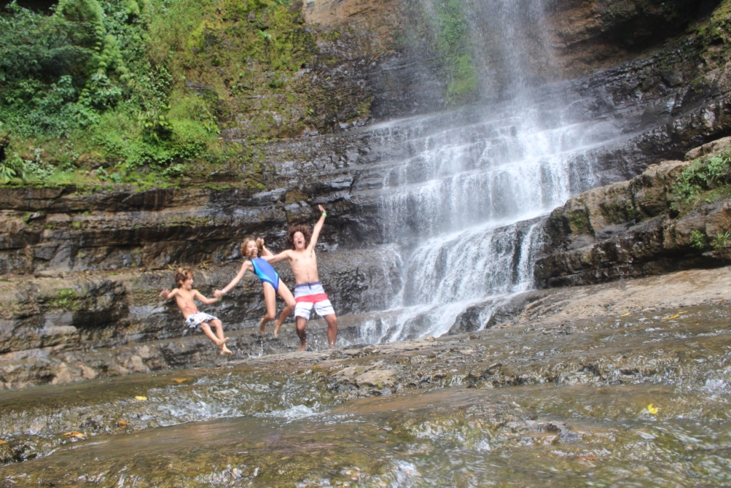 El lunes partimos hacia las cascadas de Juan Curi. Después de una linda caminata muy selvática cruzando arroyitos llegamos a la cascada. Es espectacular. A sus pies un gran pozo de agua. Nos quedamos toda la mañana metiéndonos en ese jacuzzi natural, viendo los que bajaban haciendo torrentismo con sogas por las rocas y tomando sol. De vuelta llevamos a tres veintiañeros muy simpáticos, un inglés, una holandesa y una americana que estaban viajando solos por el país.