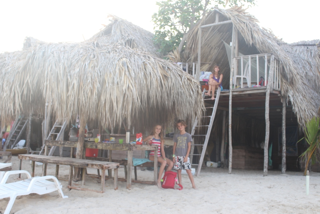 Caminamos hacia una de las puntas y empezamos a vislumbrar la playa paradisíaca que tanto nos habían recomendado. Llegamos al hostal, una cabaña sobre pilotes sin puerta con vista al mar. Lujo. Todos al agua aunque ya atardecía. De pronto nos encontramos con el grupete de mochileros que habíamos estado en Cuzco y Máncora. Geniales estos encuentros de ruta. El alojamiento incluía unos pocos litros de agua dulce que había que racionar para que alcance para sacar la arena. Gran aprendizaje para los chicos. Nunca dar por sentada el agua.