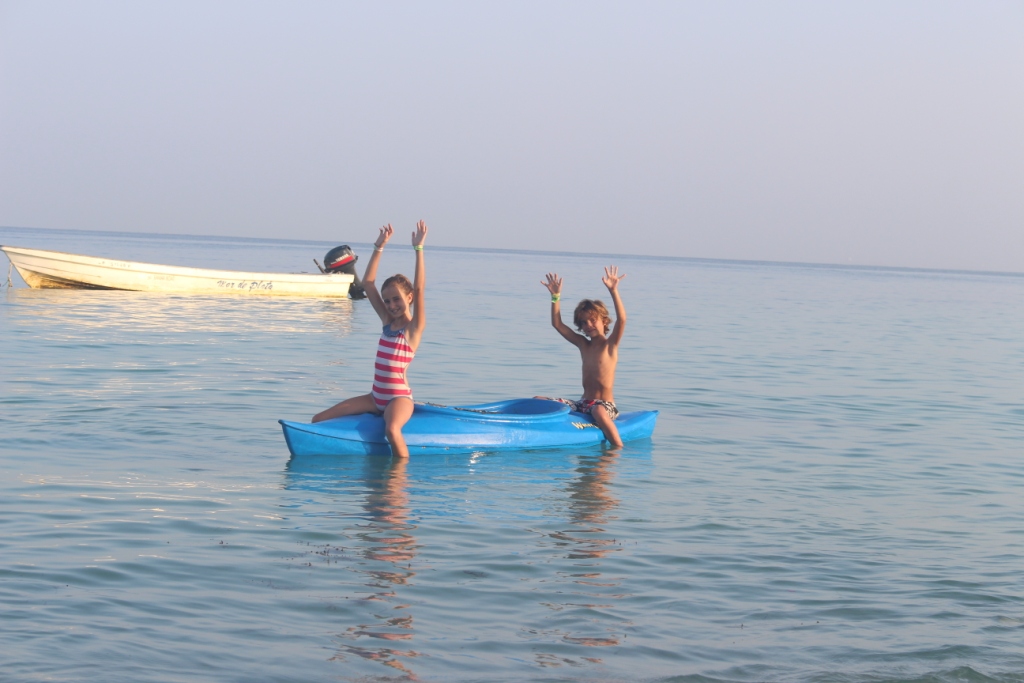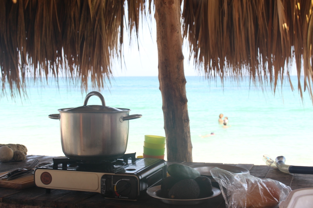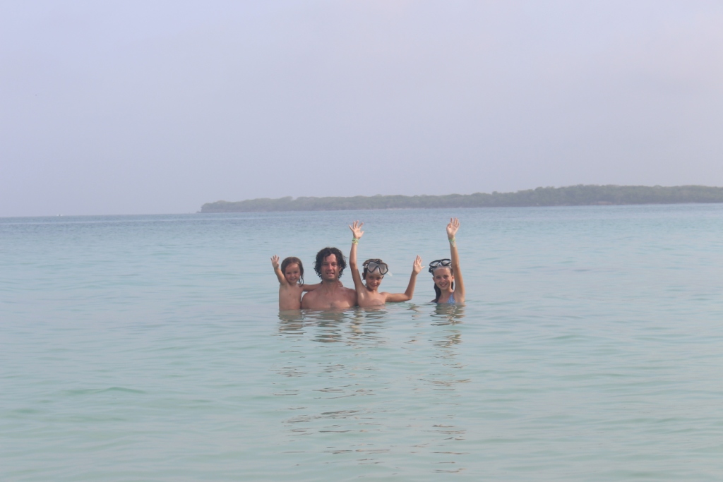 Nos despertamos con las luces de la mañana. Enseguida al agua con snorkel y kayak. Calor intenso. Estuvieron todo el día en el agua tibia del Caribe. Nos agarró hambre y Catire empezó a preparar el almuerzo. Por curiosidad preguntamos la hora: 9.30 ¡! Estábamos despiertos desde las 5 se ve y ya sentíamos que había pasado la mañana cuando recién empezaba. Al día siguiente, otra vez agua y más agua. No hacía falta salir. Después del mediodía emprendimos el regreso a Cartagena.