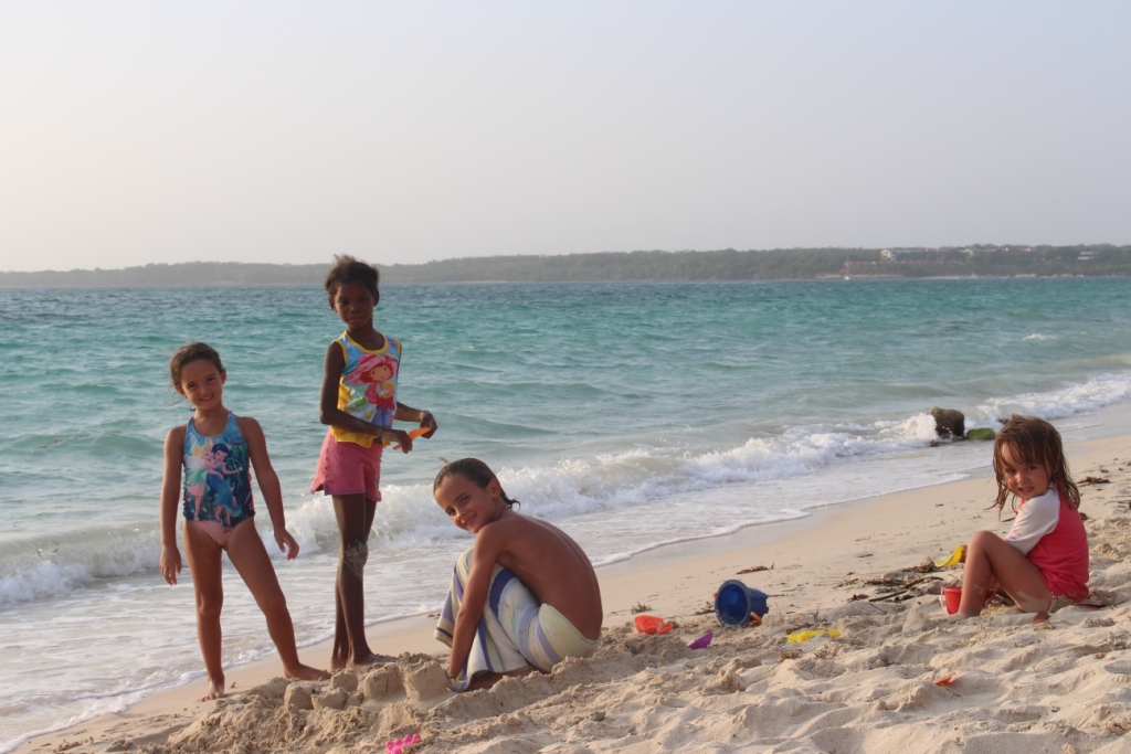 Al mediodía nos subimos todos con la idea de pasar el fin de semana largo en Baru, una isla caribeña muy cerca de la ciudad. Con la kombi tapiada el calor en la parte de atrás subió varios grados. Llegamos al supermercado a punto de desfallecer y una vez más agradecimos el aire frío bien alejado a nuestra filosofía kombi. Con buen pic nic partimos a Barú. Fiel a nuestro estilo preguntón y a falta de GPS dimos varias vueltas de más. Yo iba atrás abombada por el calor cuando miro por la venta y me encuentro en medio de una favela colombiana. En algún momento erramos la ruta. Entre reggeatons, baches y gritos pasamos sin problemas y recuperamos el camino.