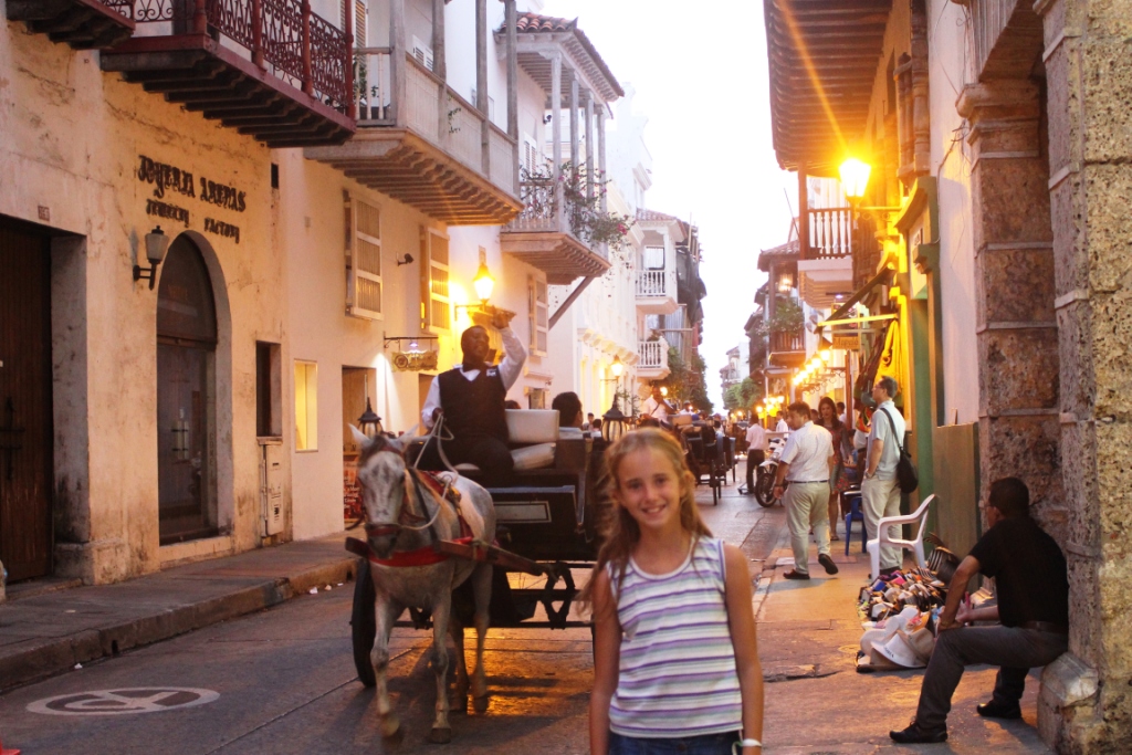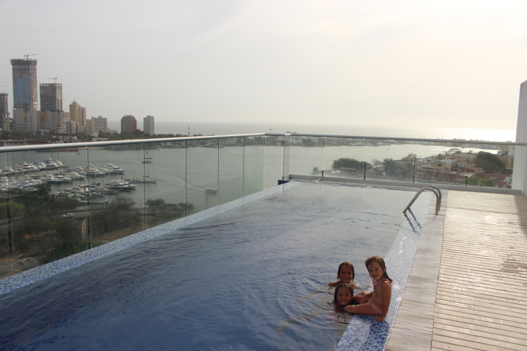 Nos recibieron Hernando y Elizabeth. Una amiga de Silvia había trabajado con Hernando que era despachante de aduanas y él sin conocernos con gran generosidad nos invitó a su casa con vista al casco histórico y una pileta en la terraza que fue un regalo para los días de calor caribeños. Al día siguiente comenzaron los interminables trámites en el puerto para poder embarcar a Francisca. A la tarde aprovechamos para caminar por la ciudad que es un sueño de película. Las callecitas que se pierden entre las murallas, las plazas tropicales, las flores, los coches a caballo que pasean turistas. De casualidad nos encontramos con tres amigas. Jose, Delfi y Sofi que estaban de viaje justo los mismos días y pudimos compartir con jugo de lulo mediante las peripecias del viaje. Cada tanto viene bien sentir aires porteños.